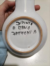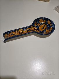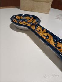 Poggiamestolo dipinto a mano, blu con decori gialli. Serie limitata, ceramiche BAFFONI Nuovo, mai utilizzato.