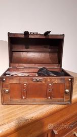 Portaoggetti da mobile in legno e cuoio cm. 35 x 20 chiusure in ottone