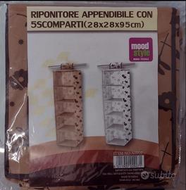 Portaoggetti appendibile da armadio. 5 scomparti Materiale TNT Misure: 28cm x 28cm x 95cm