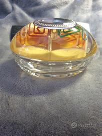 oggetto decorativo in resina trasparente, con inserto in argento e dettagli decorativi interni.