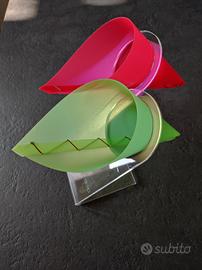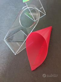Portaoggetti in Plexiglass da tavolo consistente in: cartoccio fucsia e verde. Oggetti di design. 15,00 € cad.