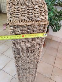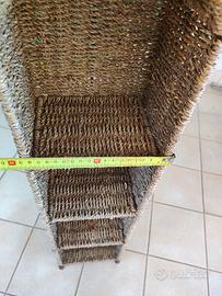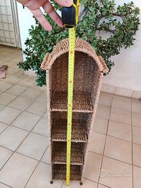 Struttura in ferro e finitura in rattan naturale con 4 comparti Altezza cm 80 Larghezza cm 19 Profondità cm 15. In ottime condizioni. Ritiro a Mano in Roma zona Montagnola €20