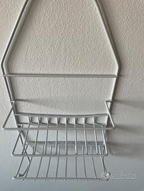 Portaoggetti per doccia 2 ripiani e 2 ganci Bianco Si appende facilmente al miscelatore o al saliscendi della doccia