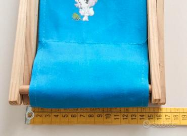 Portaoggetti in tessuto blu con telaio pieghevole in legno. Può essere utilizzato in qualsiasi ambiente, molto adatto per organizzare gli oggetti della scrivania o per essere appoggiato su una mensola. Misura 16 x 12 cm ed è alto 18 cm. Mai utilizzato.