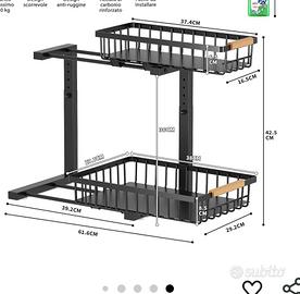 vendo per errato acquisto , organizer sotto lavello da cucina o lavanderia , nuovo è stato solo montato. Le misure sono nella seconda foto.