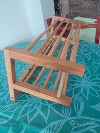 Vendo per inutilizzo questa pratica doppia mensola in bambù con 6 ganci appendini.misure:larghezza 60 cm,altezza 24.5,profondità 24.5