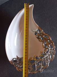 Portaoggetti vaso svuotatasche in ceramica bianca e argento, forma a goccia