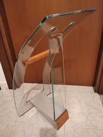 Portaombrelli in vetro curvato, oggetto da design. Usato poco, non presenta graffi, imperfezioni. Molto bello e originale. Ottimo, come nuovo. Misure : h. cm. 67, larghezza cm. 31.