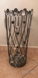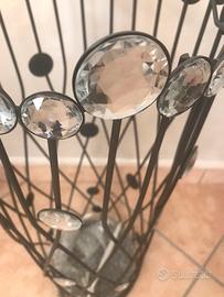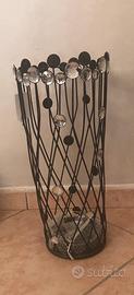 Portaombrelli dallo stile contemporaneo, realizzato in metallo nero con dettagli decorativi effetto cristallo trasparente.