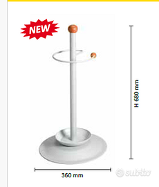 Portaombrelli verniciato argento con accessori in legno e vaschetta gocce in plastica