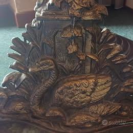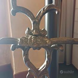 Portaombrelli vintage in bronzo/ottone decorato stile antico – pezzo scenografico 8 kg Elegante portaombrelli vintage in metallo pesante (circa 8 kg), con ricche decorazioni classiche in stile antico. Modello molto scenografico e raro, perfetto per ingresso di casa, hotel, B&B, studio professionale o locale di charme. Caratteristiche: * Struttura robusta e pesante * Finitura brunita effetto bronzo/ottone antico * Vaschetta inferiore raccogli acqua integrata * Decori floreali e naturalistici con cigno centrale * Parte superiore con supporti per ombrelli e bastoni * Ottimo impatto estetico Condizioni: Buone condizioni generali come da foto. Normali segni del tempo coerenti con l’età e l’utilizzo. Misure: (da inserire: altezza circa 70 cm/ larghezza 40 cm) Prezzo: €490 trattabili Ritiro: Ritiro a mano consigliato vista la struttura pesante. Possibile accordo per consegna in zona. Oggetto ideale per chi cerca arredo elegante, vintage, classico o da dimora storica