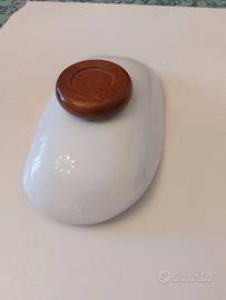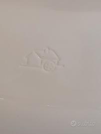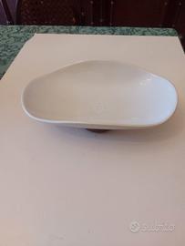 Portapane originale Mulino Bianco, pezzo storico delle raccolte punti metà anni '80. Il pezzo si distingue per il design moderno a "guscio" in ceramica bianca lucida con logo della casetta impresso a rilievo sul fondo. La base è in legno massiccio originale. Condizioni: Ottime, ceramica integra senza sbeccature. Perfetto come centrotavola, fruttiera o per completare la tua collezione di ceramiche storiche Barilla/Mulino Bianco.