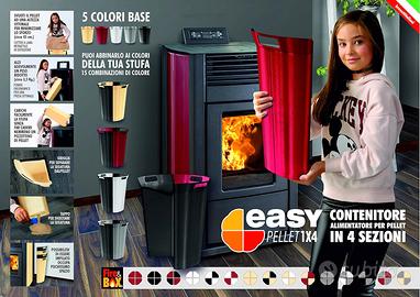Alzi agevolmente 1 sezione con un peso ridotto , circa 3,5 kg grazie all'impugnatura e il fondo ergonomico. La griglia , posta sul fondo delle sezioni, separa la segatura dal pellet evitando di farla cadere nel serbatoio della stufa per successivamente essere eliminata dal tappo presente sul fondo contenitore.