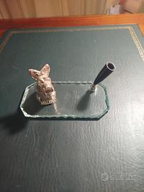 Grazioso portapenne da scrivania vintage anni 70, con base in vetro, con cagnolino accovacciato. Nessun particolare difetto, in eccellente stato si conservazione