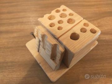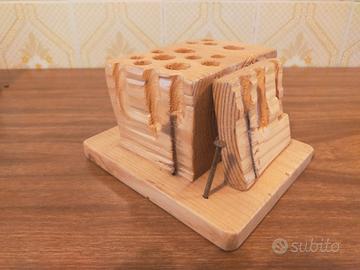 Portapenne artigianale in legno, realizzato assemblando materiale di scarto di altre lavorazioni.