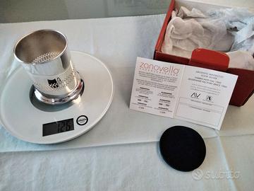 Peso 126 grammi di solo argento, altezza 8,5 cm, diametro 7,5 cm.
