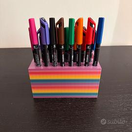 Portapenne/pennarelli in materiale multicolore o tinta unita. Misure 15x9x8 con 16 fori da 10mm. A richiesta misure e colori diversi.