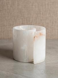 Un tocco di raffinata eleganza per la tua scrivania ✨. Questo splendido portapenne si distingue per il suo esclusivo design a spirale aperta, lavorato interamente a mano ✋✨. Ricavato da pregiata pietra bianca (alabastro), è caratterizzato da una texture unica e da delicate venature naturali dalle sfumature calde 🤎. Un oggetto di design funzionale che arreda con stile 💎. • 🔸 Caratteristiche: Lavorazione artigianale 🔨. Forma cilindrica a spirale, moderna e originale. La naturale traslucenza e le venature uniche della pietra rendono questo pezzo esclusivo e irripetibile 🏛️. • ✨ Utilizzo: Perfetto come elegante portapenne per studi professionali e scrivanie di classe, o come raffinato porta-pennelli da trucco 🛋️. Un'ottima idea regalo per lauree, inaugurazioni di uffici o per chi ama gli accessori ricercati 🎁.