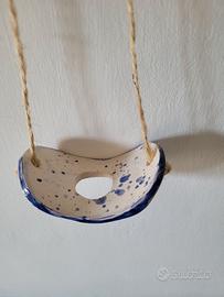 Supporto per appendere le piante tillandsia, in ceramica bicottura con engobbio bianco e smalto blu. Nuovo, artigianale, idea regalo. Possibili altri su ordinazione. Pianta non inclusa