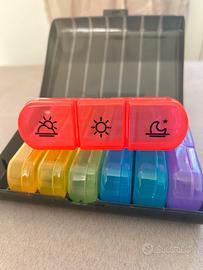 Portapillole settimanale con scomparti separati, ideale per organizzare farmaci o integratori in modo semplice e ordinato.