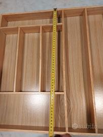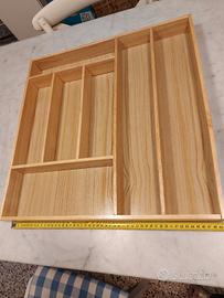 Portaposate in legno con 7 scomparti. 50 cm × 50 cm Altezza 5,5 cm Utile per contenere sia le posate che tutti gli attrezzi da cucina.
