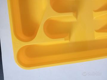 Portaposate da cassetto della TONTARELLI. Colore giallo ambra. Nuovo mai usato. misure; 26,5x33,5x4,5 . Aggiungo anche un mestolo in bambù come regalo