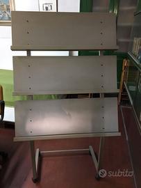 Si tratta di un espositore porta riviste o libri o depliant che ha le seguenti misure: cm 45 profondità x 91 larghezza x 160 di altezza. E' in metallo grigio.