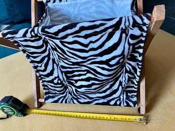 Portariviste da terra vintage zebrato. Misure: HxLxP 30x38x28. Cedesi per inutilizzo. Ritiro a carico dell’acquirente in zona corso svizzera/parco dora a Torino.