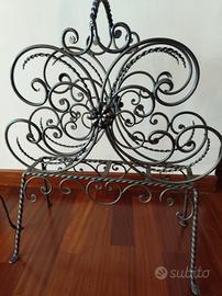 Coppia vintage di portariviste e posacenere in ferro battuto. Bellissima manifattura artigianale, pezzi unici tenuti benissimo