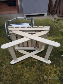 in vendita portariviste in ferro, larghezza 42 centimetri, altezza 35 centimetri, profondità 33 centimetri, capiente e in ottime condizioni, qualche leggerissimo segno sulla vernice sulle parti rotonde. tavolino in plastica, molto robusto, posizionabile su 3 differenti altezze, 27, 35 e 41 centimetri. mentre le misure sono 46 centimetri di lunghezza e 43 di larghezza. utilizzabile come tavolino da pic nic o sgabello, sedia, tanto ha un'ottima portata. qualche segno qua e la. vendibili anche singolarmente, 20 euro l'uno trattabili. se spediti verranno forniti smontati