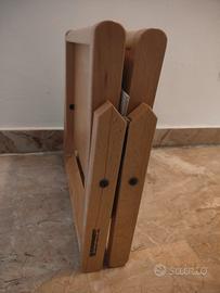 Portariviste Foppapedretti in legno, modulare, impilabile, pieghevole. Misure aperto: 42,5 cm di lunghezza, 38,2 cm di larghezza, 26 cm di altezza