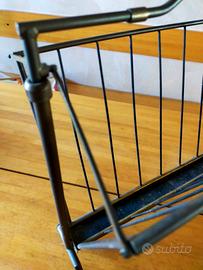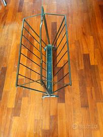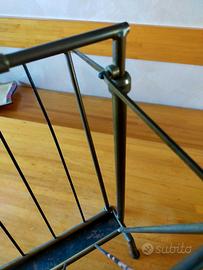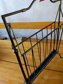 Portariviste in ottone, il fondo e le stecche delle 'ali' sono in ferro. L'oggetto è da lucidare per ottenere il classico colore dell'ottone pulito. L'apertura e chiusura delle due 'ali' avviene per scorrimento dell'impugnatura ai suoi estremi.