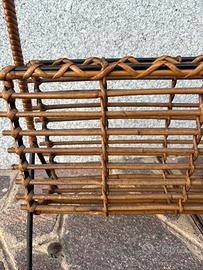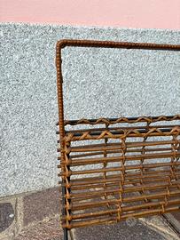 Vendo elegante portariviste vintage in rattan naturale con struttura in metallo nero.