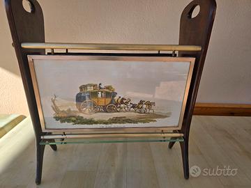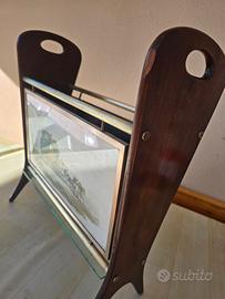 Portariviste anni 50 legno e ottone con stampe laterali. Oggetto ormai d'antiquariato, in buone condizioni.
