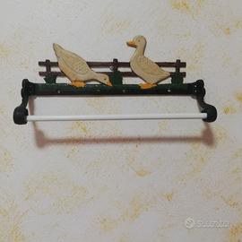 Portarotolo da cucina vintage in ghisa e legno, da appendere a parete con motivo papere lunghezza 32 cm altezza 12 cm pesa 630 grammi prezzo trattabile