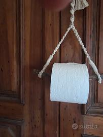 Porta rotolo carta igienica da muro Country Rustico fatto a mano macramè.