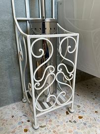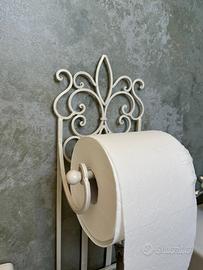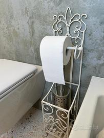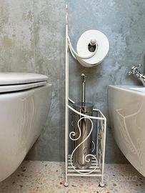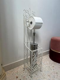 Portarotolo e porta scopino in ferro battuto. Come da foto come nuovo. Altezza 77cm Larghezza 22cm Profondità 17 cm
