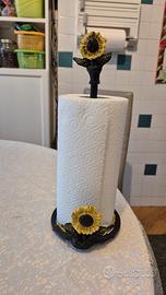 Bellissimo e originale portarotolo per carta da cucina o altro con girasoli, in metallo e dipinto a mano svendo a solo 20,00 euro