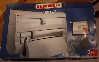 Vendesi portarotolo Scottex, pellicola e alluminio Marca Leifheit, NUOVO, MAI USATO ancora nella sua confezione originale. Corredato di cursori per il taglio preciso e alla lunghezza desiderata di pellicola e alluminio.