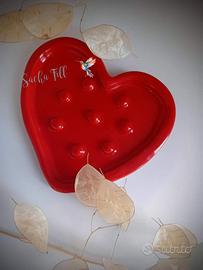 Portasapone a forma di cuore in ceramica, utilizzabile anche come svuotatasche, portagioie o poggiamestolo.