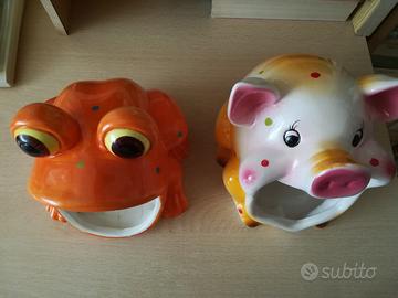 Portasapone in ceramica. Maialino e ranocchia. ranocchia: 15x14x15, mentre il maialino è più lungo 17x14x15 circa. Contattatemi se interessati.