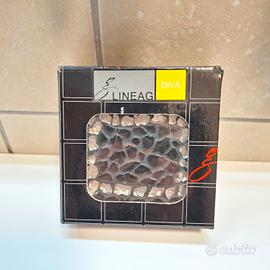 Porta sapone LineaG in vetro/Metallo Nuovo. L'accessorio bagno è stato abbellito artigianalmente con mosaico vetroso Villiglas nero e gemme oro/argento. Pezzo unico creato da me e non presente in commercio.