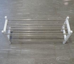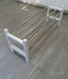 Portascarpe 2 ripiani salvaspazio, ben solida e come nuova Misure: Lunghezza 100 cm Spessore 28/30 cm Altezza 31/37 cm Prezzo solo 19 euro