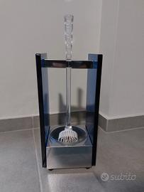 Portascopino in vetro blu da 10 m/m, h40cm, L15cm, profondità 12cm. Scopino in plastica trasparente, bicchiere in vetro