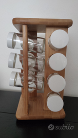 Mancano 3 barattoli, sono presenti solo 13 barattoli di vetro capacità 80 ml. con tappo di plastica. Dimensioni portaspezie in legno: altezza 27,5 cm, larghezza 15 cm. Materiale di alta qualità, realizzata in legno resistente. Peso totale: 1,784 kg.