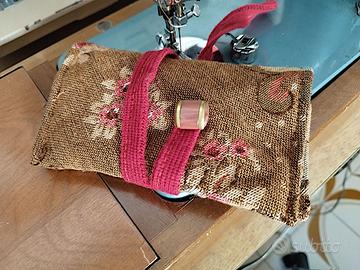 Come vedete dalle foto, al di sopra di questa tasca, c'è il porta cartine, mentre nella parte superiore del portatabacco, la stoffa ripiegata serve a tenere aperto il pacchetto di tabacco.