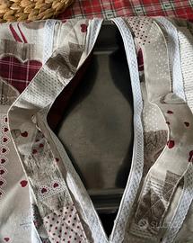 Bellissimo porta teglia fatto a mano, realizzato in tessuto di cotone resistente con romantica fantasia a cuori. Perfetto per trasportare in sicurezza teglie, pirofile, torte o lasagne quando vai a pranzo da amici, a una festa o a un picnic.