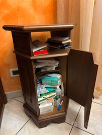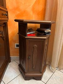 Bellissimo pezzo di arredo con forma esagonale . Portatelefono con antina contenitore Misure cm 41x41 altezza cm 73