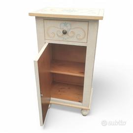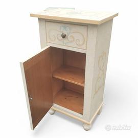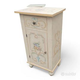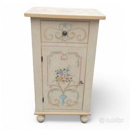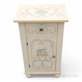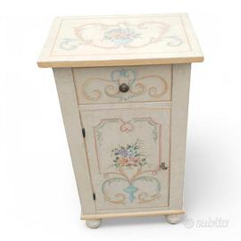Questo comodino portatelefono dipinto in stile provenzale aggiunge un tocco di eleganza rustica a qualsiasi stanza. La finitura vintage con dettagli floreali e motivi decorativi dona un'atmosfera calda e accogliente. Il mobile è realizzato con materiali di qualità e una lavorazione artigianale che ne esalta la bellezza. Perfetto per conservare oggetti preziosi o semplicemente come elemento d'arredo, questo mobiletto diventerà un pezzo da collezione nella vostra casa. Dimensioni compatte ma spaziose, facile da pulire e da spostare. Un gioiello di artigianato italiano per arredare con stile.