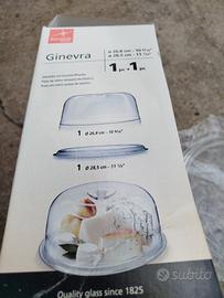 Cupola ( in plexiglass) con vassoio in vetro Ginevra di Bormioli . Nuova con scatola.